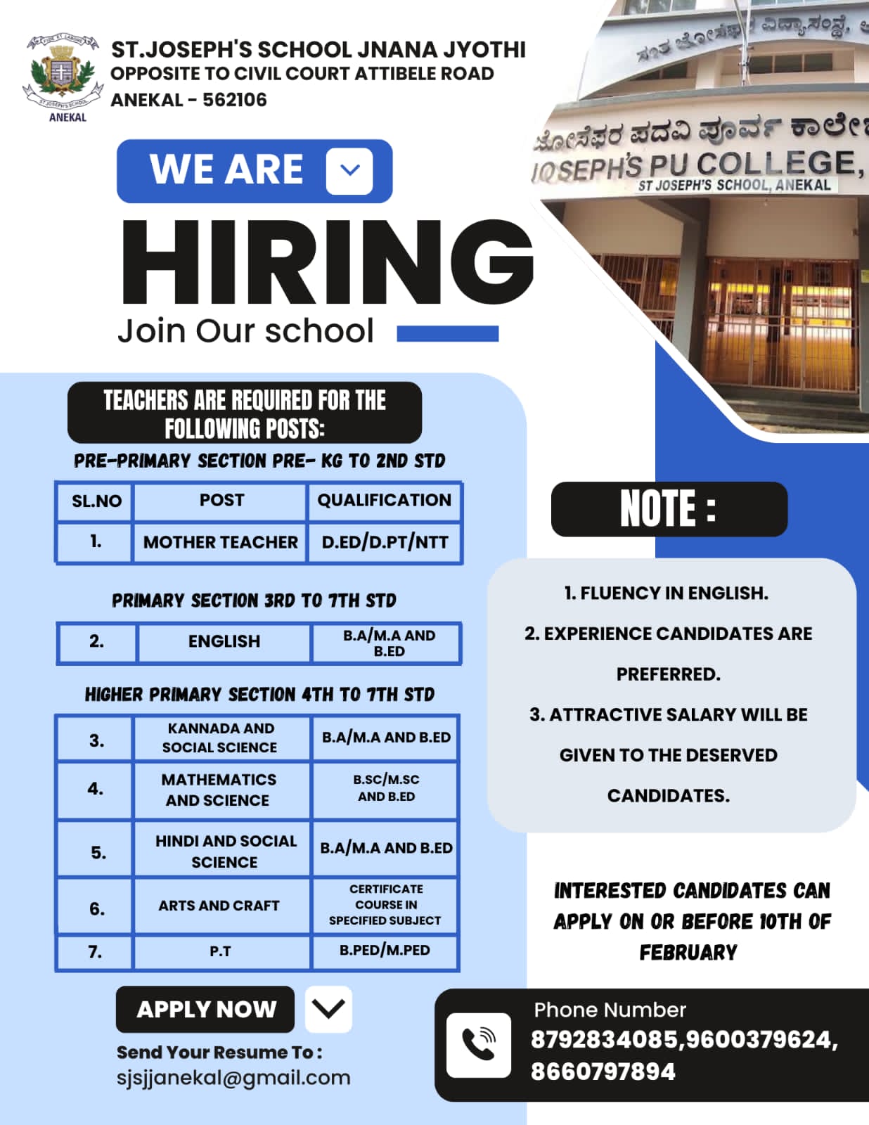 ST. JOSEPH’S SCHOOL,JNANA JYOTHI, ANEKAL